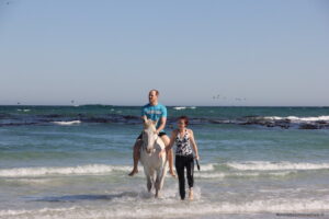 Feel the wind in your hair as you embark on a serene ride through dune forests and onto the untouched stretch of Pearly Beach. Discover diverse wildlife, rare fynbos species, and vibrant flowers as you journey towards the coast. The long, sandy beach awaits where you and your horse can enjoy the ultimate feeling of freedom. Whether you're a beginner or more advanced rider, Sarah ensures that you’re paired with the right horse to match your experience and riding style.