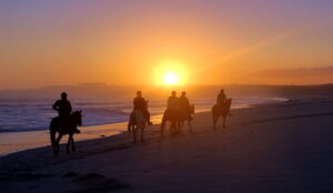 There’s no better way to end your day than with a sundowner on the beach. Watch the sky explode into a canvas of colors as the sun sets over the Atlantic, providing a breathtaking backdrop for your ride. Enjoy a drink of your choice and delicious snacks as the golden hour transforms the beach into a paradise. Return to the farm after sunset with full hearts and beautiful memories.